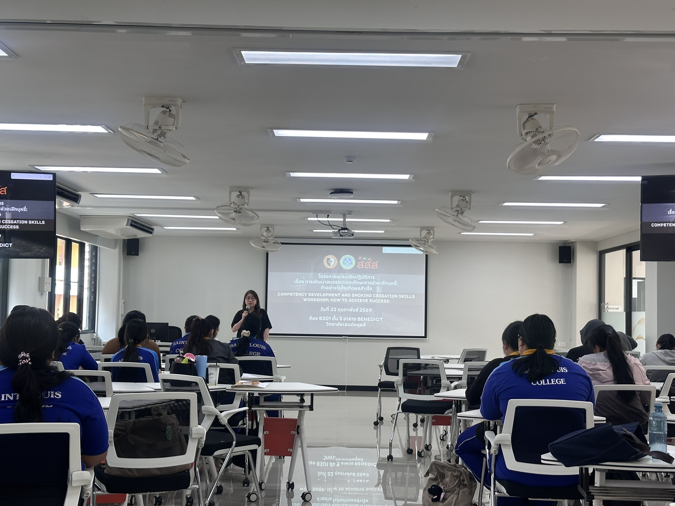 เมื่อวันอาทิตย์ที่ 22 กุมภาพันธ์ 2569 คณะพยาบาลศาสตร์ วิทยาลัยเซนต์หลุยส์ จัดโครงการอบรมเชิงปฏิบัติการ เรื่อง “การพัฒนาสมรรถนะและทักษะการช่วยเลิกบุหรี่: ทำอย่างไรจึงเกิดผลสำเร็จ” ให้แก่นักศึกษาคณะพยาบาล จำนวน 52 คน โดยมี ผศ.พว.กรองจิต วาทีสาธกกิจ ผศ. ดร.นันทพันธ์ ชินล้ำประเสริฐ และ อาจารย์คณะพยาบาลศาสตร์ เป็นวิทยากร