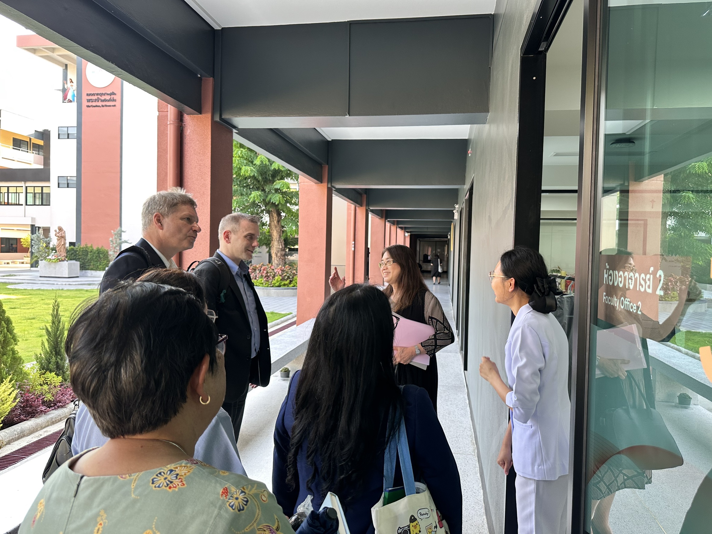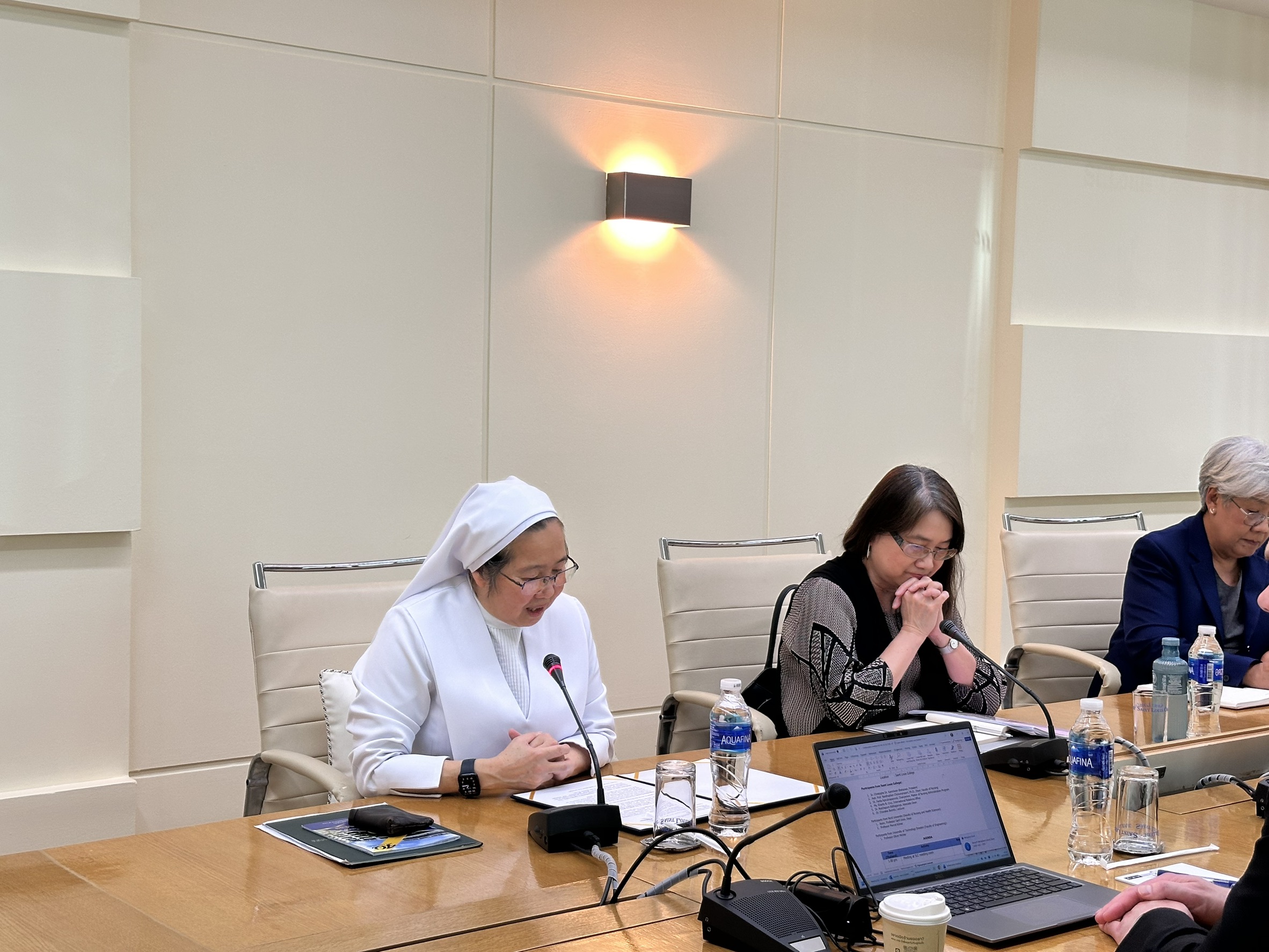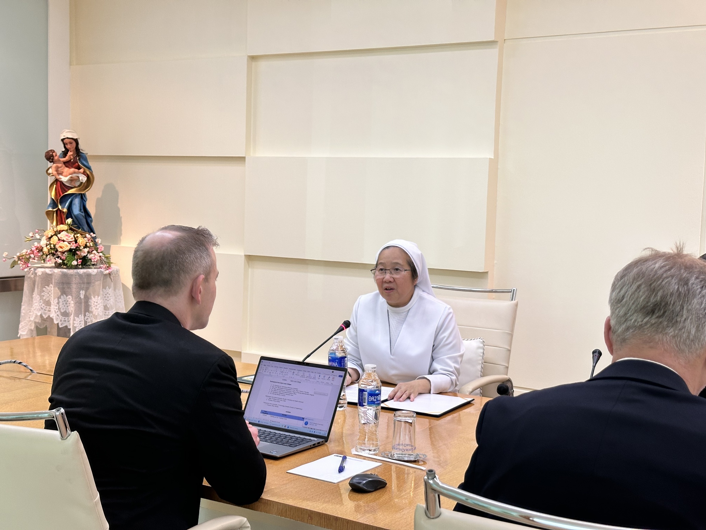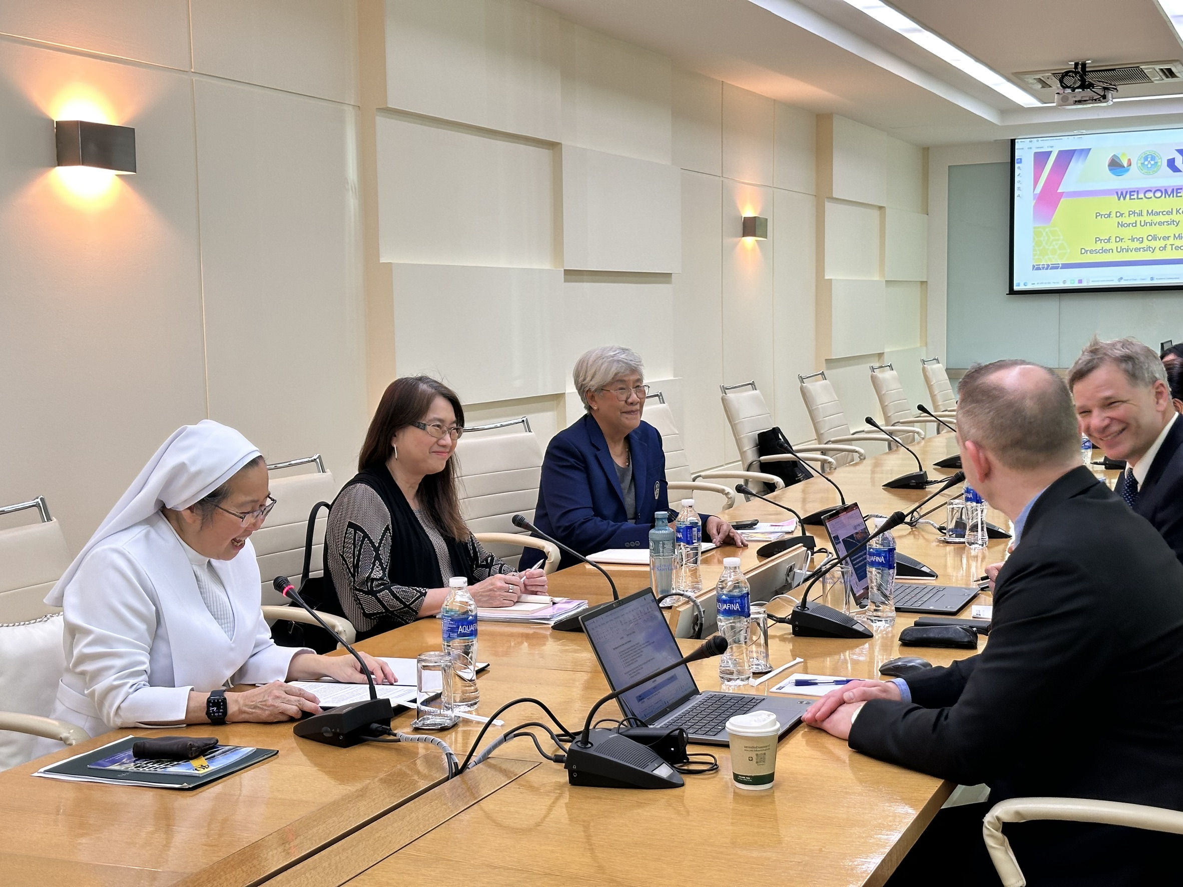ดร.กมลวรรณ (เซอร์คริสตอฟ) เภกะนันทน์ อธิการบดี และ ผศ.ดร.นันทพันธ์ ชินล้ำประเสริฐ คณบดี พร้อมด้วยทีมผู้บริหาร คณะพยาบาลศาสตร์ ให้การต้อนรับคณะผู้เชี่ยวชาญจากต่างประเทศ ได้แก่ Prof. Dr. Phil. Marcel Köhler จาก Nord University และ Prof. Dr.-Ing Oliver Michler จาก Dresden University of Technology ในโอกาสเดินทางมาเยือนและหารือความร่วมมือด้านการศึกษาและการวิจัย เพื่อพัฒนาศักยภาพทางวิชาการและยกระดับความร่วมมือในระดับนานาชาติ ณ ห้องประชุมสภาของวิทยาลัยเซนต์หลุยส์